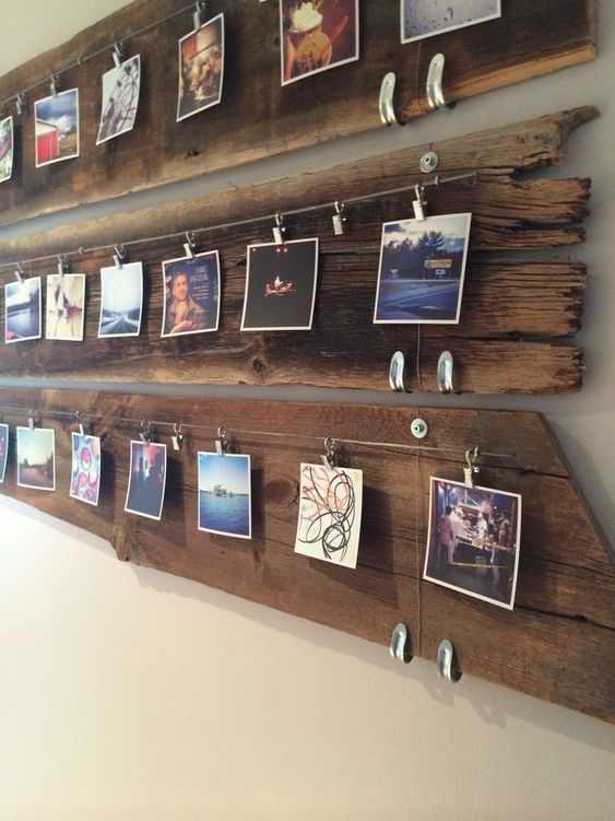 Если вы любитель фотографий и обожаете развешивать памятные снимки по всей квартире, тогда вам приглянется идея оформлении стенда. Это обычные доски, предварительно покрытые лаком. На них очень удобно размещать фото любого размера.