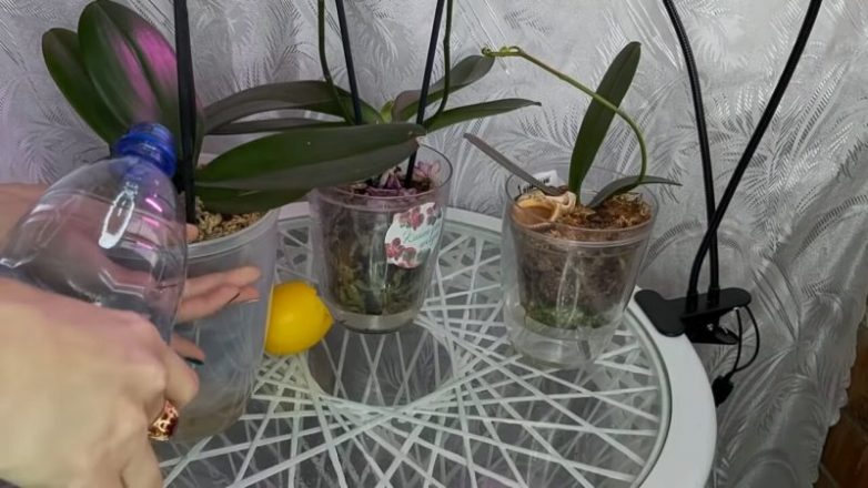 Поливать необходимо как обычно, оставив во втором горшке на 15 минут, из которого затем слить лишнюю воду. Поливать таким способом рекомендуется орхидеи, которые нуждаются в реанимации, а также орхидеи, которые только-только выпустили цветонос и нераскрывшиеся бутоны. Если же орхидея выпустила все бутоны, то поливать её лимонной водой не нужно! Вот и все простые правила для успеха.