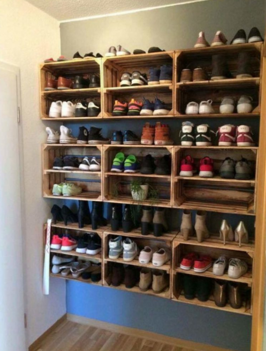 Если у вас большая семья, тогда у вас часто возникает вопрос: куда ставить обувь. Из деревянных досок можно смастерить шкаф, причем в самых огромных размерах, который отлично встанет именно в вашей прихожей.