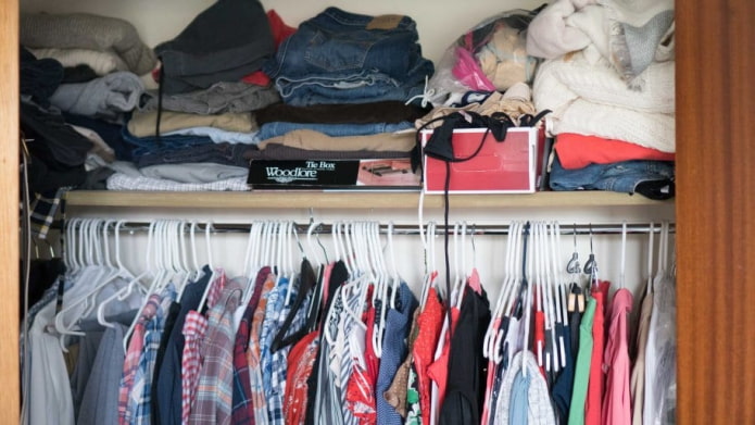 Одежду сортируют, перестирывают и сушат на свежем воздухе. Несезонные вещи убирают в вакуумные пакеты.Вещи, которые лежат без носки более двух лет, убирают на хранение в кладовку или другое удаленное место.При повторном заполнении шкафа важно разграничить места для хранения чистой одежды и предметов ежедневной носки.