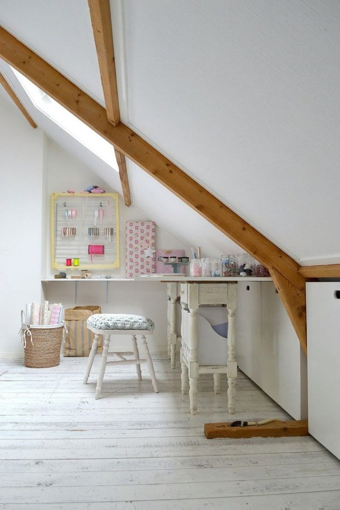 На чердаке вы сможете оставлять «творческий беспорядок», не заботясь о том, что он станет раздражать домочадцев. Также дети или животные не испортят дорогие вам предметы, а удалённость от спален позволит засиживаться за любимым занятием допоздна, никому не мешая.