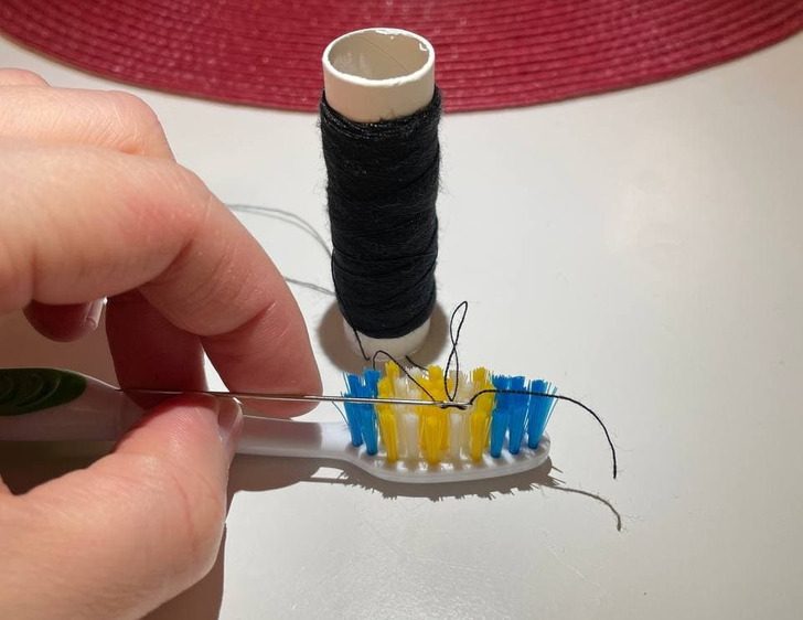 Если долго не получается продеть нитку в иголку, используйте зубную щетку