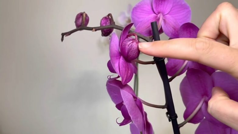 Если вы видите, что нераскрывшиеся бутоны орхидеи слегка пожелтели и не спешат раскрываться, скорее всего, им не хватает влаги. Увлажните их с помощью пульверизатора и повторяйте эту процедуру раз в день до тех пор, пока они не раскроются. Однако не допускайте попадания влаги на уже раскрывшиеся цветы — это, напротив, приведёт к их опадению.