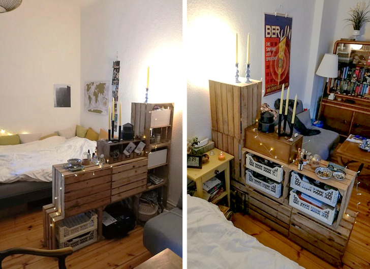 «Взял старые деревянные ящики и переделал их в стеллаж»