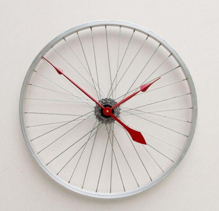 Если у вас остался сломанный велосипед, то не торопитесь его выбрасывать. Из колеса получаются очень эффектные и стильные часы, а сам корпус пригодится для оформления своего сада в качестве подставки для цветов.