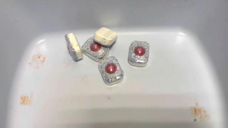 Пять таблеток для посудомоечной машины залейте двумя чайниками кипятка.
