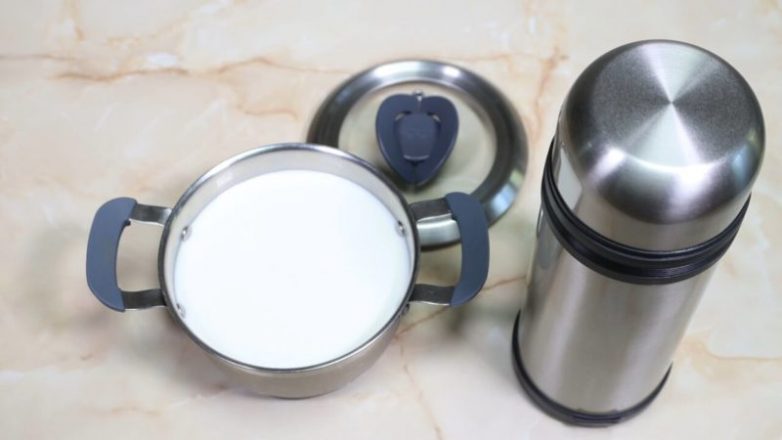 Если в вашей семье любят топлёное молоко, то не покупайте его в магазине — сделайте проще простого своими руками, даже не используя духовку. Молоко доведите до кипения, а термос заранее обдайте кипятком внутри и просушите. Кипящее молоко перелейте в чистый сухой термос, плотно закройте и оставьте на 7-8 часов. Молоко получится розоватым, с насыщенным топлёным вкусом — одним словом, идеальное! А главное — минимум усилий в приготовлении.