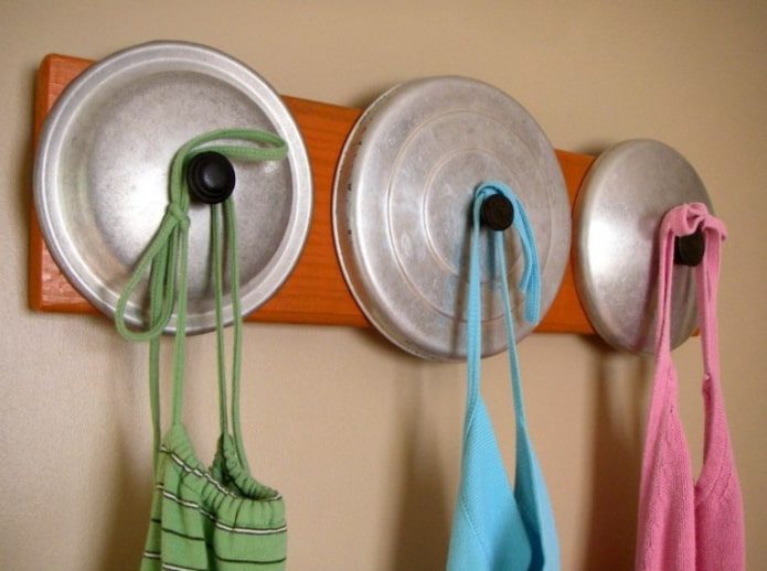 Ключницы, вешалки для кухонных полотенец, крючки для половников, скалок и других мелочей можно сделать из самых неожиданных кухонных аксессуаров, главное, проявить немного фантазии. Вот лишь несколько вариантов того, что можно использовать для изготовления оригинальных подвесов.Крышки от кастрюль;