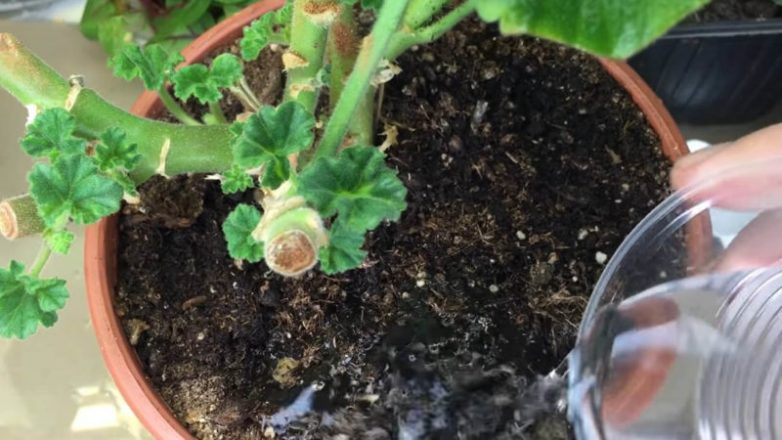 С обрезанной же геранью следует также провести некоторые дальнейшие процедуры. Как только почки проснулись, растению нужно дать азотную подкормку, чтобы оно быстрее нарастило зелёную массу. Для этого можно взять аптечный раствор аммиака и развести в следующих пропорциях: 1 ч. л. препарата растворить в 1 л воды. Перемешать и пролить по влажной земле.