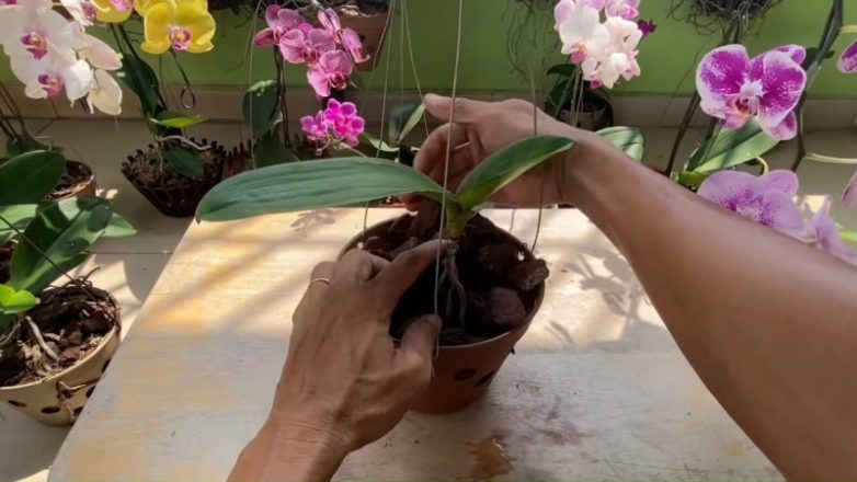 Через некоторое время орхидея укоренится на новом месте и начнёт выпускать сочные зелёные цветы и цветонос!