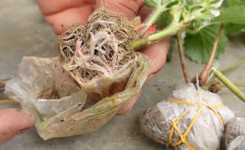 Через 15 дней усики клубники, нарастившие много корней, можно будет развернуть и отрезать от основного куста.