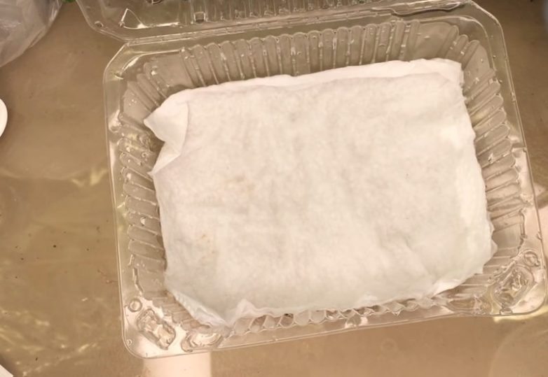 Бумажное полотенце необходимо хорошо увлажнить, но при этом воды не должно быть слишком много. Ту воду, что полотенце не впитало, следует слить.