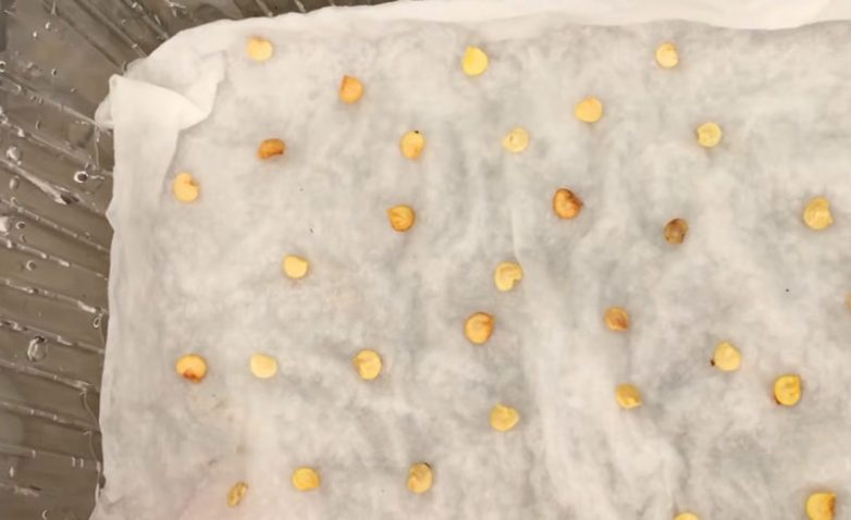 На увлажненное бумажное полотенце выложите семена перца на небольшом расстоянии друг от друга.