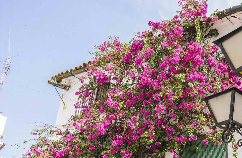 Великанша родом из Южной Америки прекрасно смотрится на стенах, колоннах и заборах. Да что говорить, более эффектное украшение для сада сложно даже представить. Ведь цветущая бугенвиллея — это сплошное облако из мелких трубчатых цветков и ярких пышных прицветников.