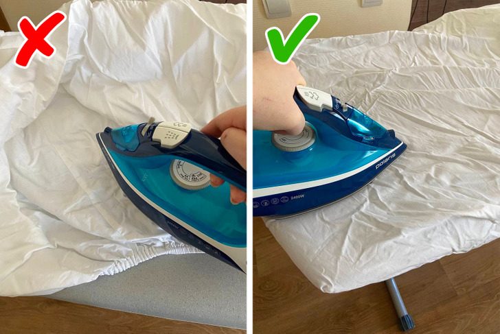 6. Идеально погладить простыни на резинке поможет угол гладильной доски