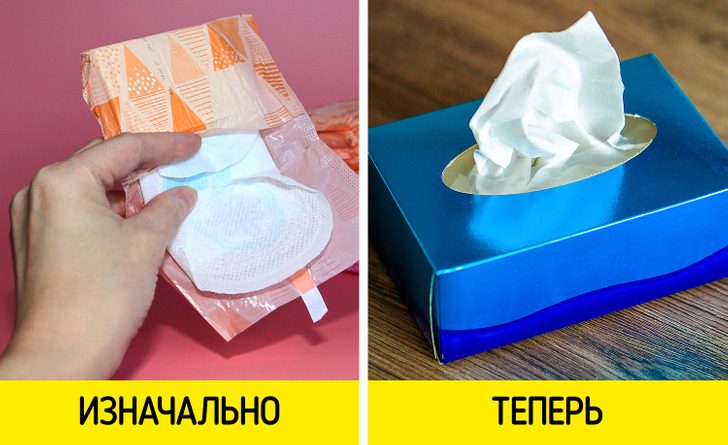 Раньше у привычных нам бумажных салфеток было совсем другое предназначение. Изначально они задумывались как фильтры для противогазов, потом компания стала предлагать их девушкам для использования во время месячных. В итоге производитель переработал формулу, сделал салфетки мягче и стал продавать их как средство для снятия макияжа и других нужд.