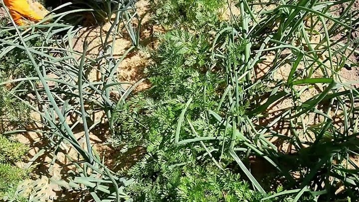 Вылейте к опилкам, перемешайте руками в перчатках так, чтобы опилки были увлажнёнными. Готовую смесь рассыпьте по грядкам лука и моркови тогда, когда они уже взошли.