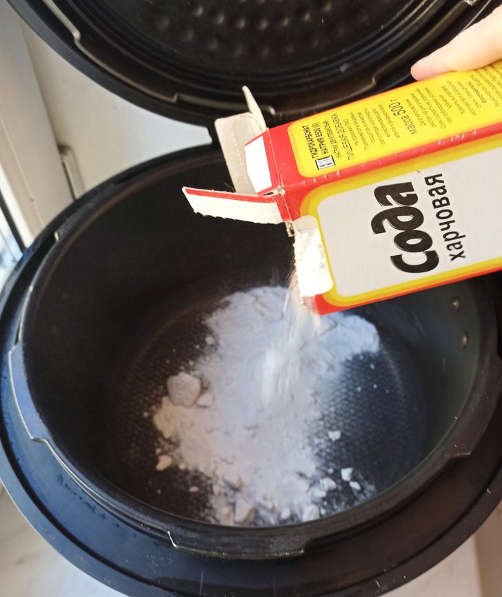 Нужно всыпать в чашу устройства несколько столовых ложек соды и залить водой. После чего закрыть мультиварку и включить режим «Подогрев». Выпущенные устройством пары справятся с неприятными запахами.