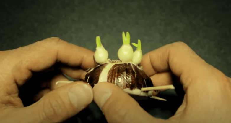Теперь убираем нашу луковицу в место, где много света, но отсутствуют прямые солнечные лучи, и наблюдаем. Примерно через 2 месяца вы увидите новые росточки.