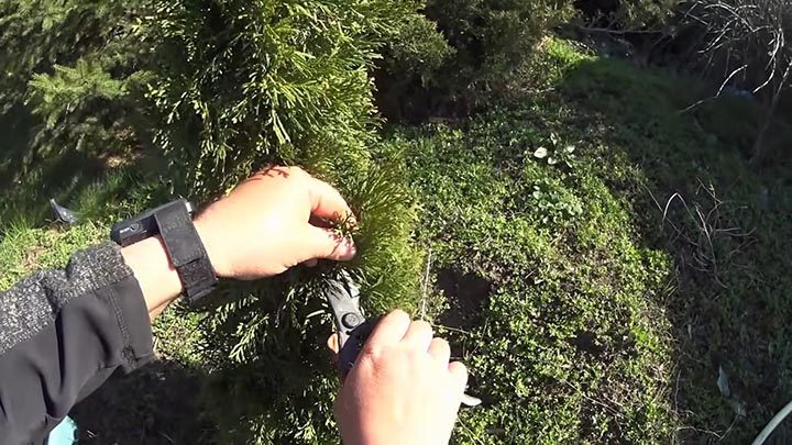 Также, чтобы не нарезать черенки, можно поступить и другим образом. Нагните ветку туи как можно ближе к земле и внизу засыпьте её землёй. Через какое-то время в этот месте на ветке начнут расти корни. Тогда ветку можно будет обрезать и пересадить в горшок, как полноценный черенок с корнями.