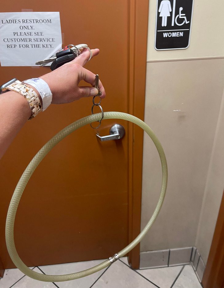 На одной заправке к ключу от уборной прикрепили вот такой «брелок», чтобы не потерять его