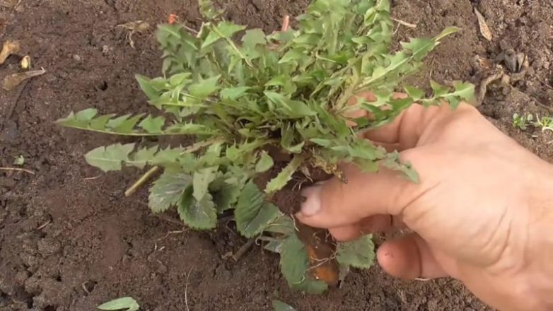 Второй совет — прополка. Если у вас на участке нет сорняков рядом с клубникой, то можете пропустить этот пункт. Если же есть такие сорняки, как одуванчик, то аккуратно извлеките растение вместе с корнем, стараясь не повредить корни клубники.