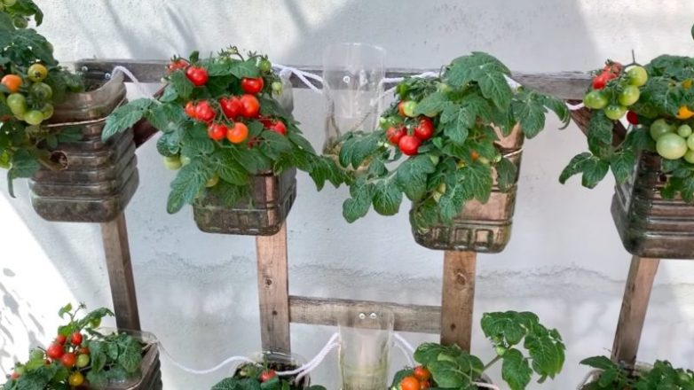 С такой простой, но эффективной системой помидоры можно выращивать вообще без труда прямо на балконе. Главное условие — подобрать правильные семена (самоопыляемые, карликовые виды томатов) и ждать урожая!