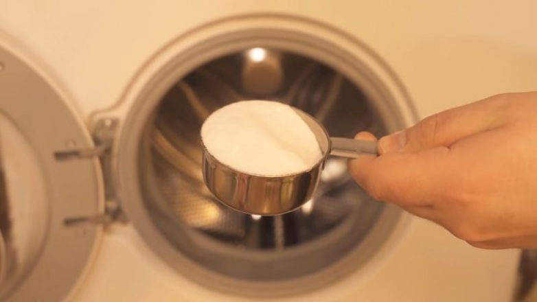 В барабан добавьте примерно 2-3 ст. л. обычной соды.