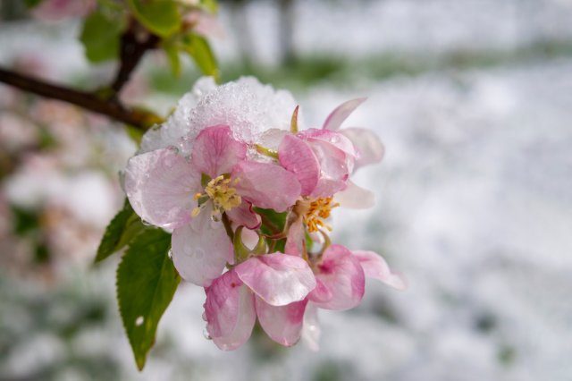 Проблема первая – возвратные заморозки. Если во время цветения плодовых деревьев температура опустилась ниже –2°С, то большинство цветков семечковых и косточковых культур будет повреждено. В фазе бутонов они могут выдержать чуть более низкие температуры – до –4°С. Чтобы не допустить гибели цветков, перед похолоданием следует предпринять некоторые меры, чтобы смягчить последствия понижения температуры и уберечь будущий урожай.