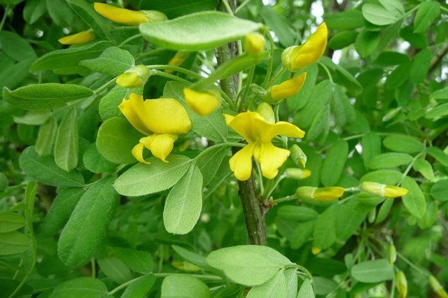 Листопадный кустарник семейства Бобовые – карагана древовидная – больше известен под другими названиями. За схожее строение листьев его называют сибирской и желтой акацией, а за плоды в виде стручков – гороховиком.