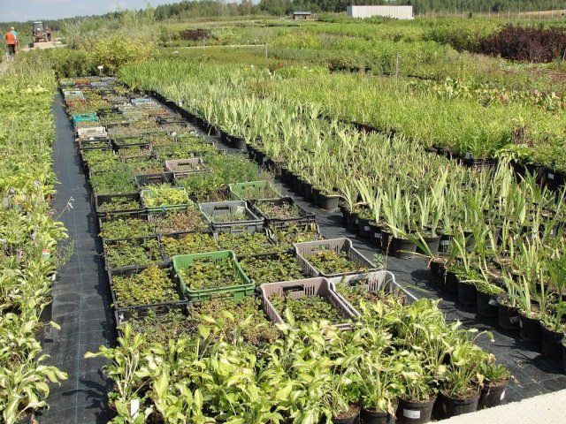 Контейнеры с саженцами разного объема в питомнике. Фото автора