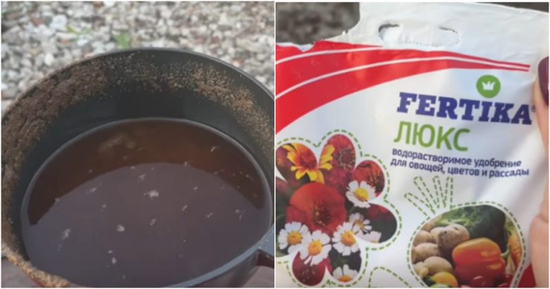 Для всех многолетних растений можно приготовить простую и вместе с тем крайне эффективную подкормку. Для нее в 10 л воды разводим 0.5 л настоянного куриного помета и 10 г комплексного удобрения для цветов, в нашем случае это «Fertika». Комплексное удобрение желательно предварительно развести в отдельной емкости, чтобы точно быть уверенным в том, что оно полностью растворилось.