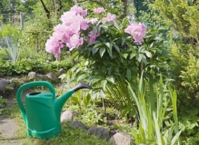 На одно растение при поливе расходуется 3-4 ведра воды. Как и для остальных культур, полив пионов лучше всего осуществлять в период без активного солнца – утром или вечером.
