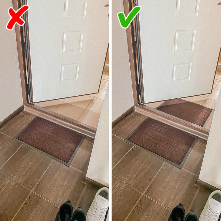 Еще одна крайне эффективная «ловушка» для грязи — это придверные коврики. Вместо 1 постелите 2: снаружи и внутри квартиры. Таким образом вы обеспечите подошвам обуви двойную очистку, и проникновение в коридор слякоти или песка заметно уменьшится.