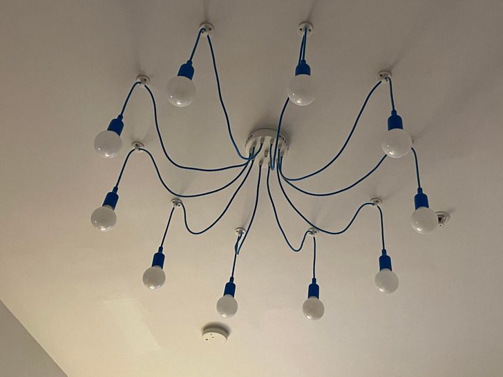 Выглядит безвкусно и вызывающе. Все, что я вижу, — лишь паука на потолке.Я бы жутко испугался, проснувшись среди ночи и увидев это висящее чудовище на потолке.