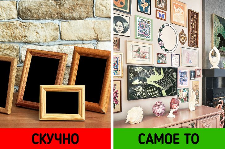 Делали с супругой ремонт в спальне. На стене висели старые, стандартные и скучные рамки. Фотографии мы любим, поэтому захотелось их оставить, просто добавить красок. Жена пообщалась со знакомым дизайнером интерьера, и он посоветовал украсить стену разными рамками, а не одинаковыми, как под копирку. Получилось стильно, модно, молодежно. Мы довольны.