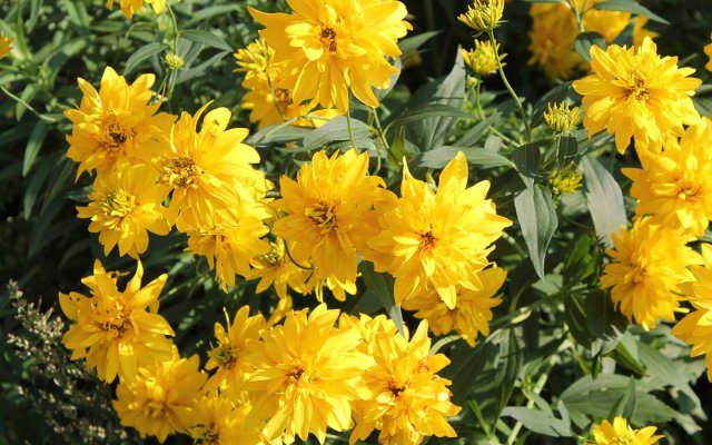Второе название – “золотой шар” – растение получило из-за своих огромных ярко-желтых цветков, покрывающих фактически весь куст. Рудбекия частая гостья во многих палисадниках средней полосы, однако родиной цветка является Северная Америка, откуда он эмигрировал в XVI веке. В современном ландшафтном дизайне растение используется при создании ярких массивов на фоне газона, также его высаживают на заднем плане миксбордеров, возле беседок и вдоль оград.
