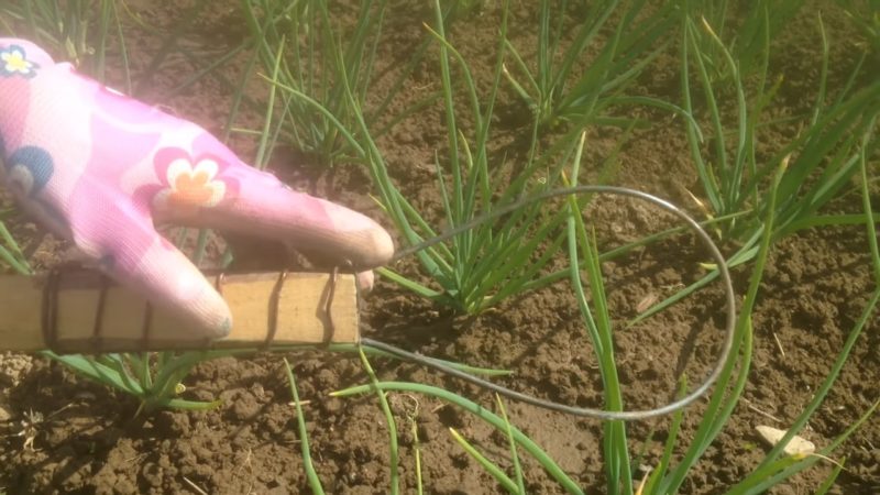 Попробуйте провести прополку и удалить сорняки. Сделать это будет легко, особенно если у вас рыхлая земля. С помощью такого самодельного инструмента прополка облегчается в разы! Корни сорняков остаются на петле из проволоки и легко убираются.