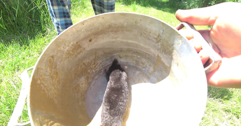Включите подачу воды из шланга и начните заливать норки. Буквально через несколько минут крот выбежит на поверхность, где его можно будет поймать.