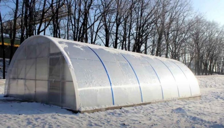 При эксплуатации теплиц в регионах со сложными климатическими условиями в зимний период рекомендуется использовать поликарбонат толщиной 10 мм — он эффективно противостоит снеговым и ветровым нагрузкам.