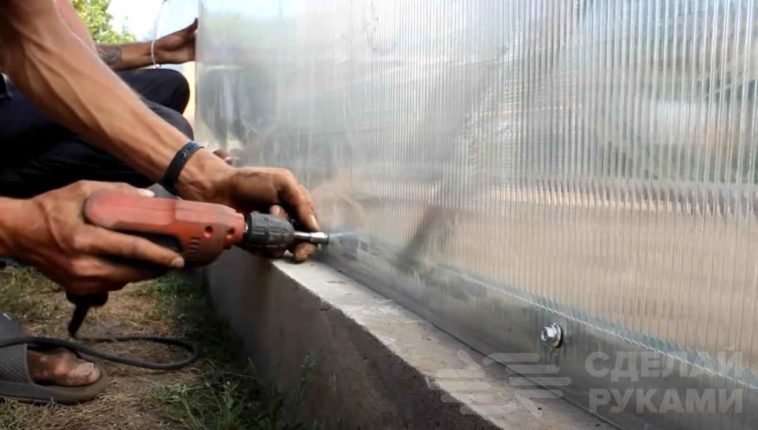 Важно крепить сотовый поликарбонат к металлическому каркасу таким образом, чтобы сторона с защитным покрытием от УФ-излучения была снаружи, а не внутри теплицы.