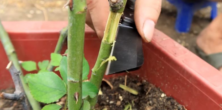 Очистите часть стебля розы с помощью острого стерильного ножа.