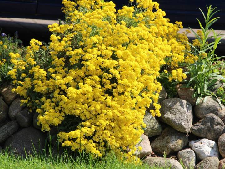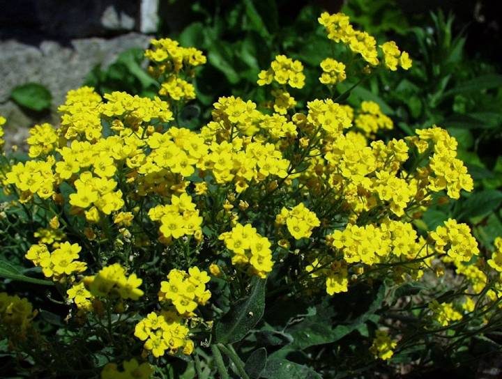 Посейте в саду чудесный многолетник — алиссум скальный. Он славится очень обильным цветением в весенний период, неприхотливостью, низкорослостью (высота — 30 см).