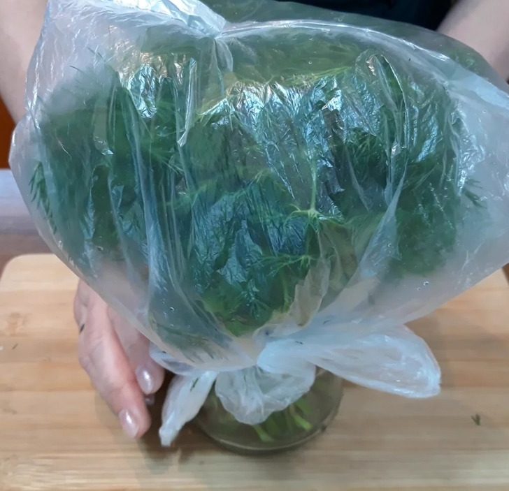 7. Зелень сохранится дольше, если промыть ее и накрыть пакетом
