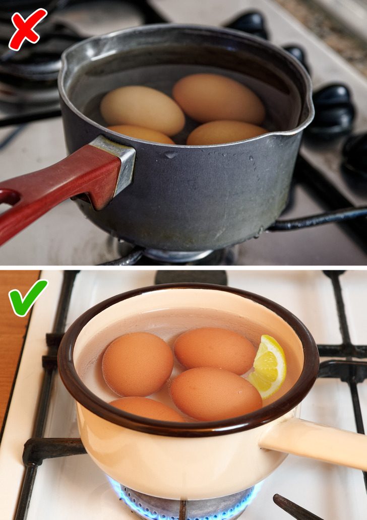3. Чтобы легко очистить яйца, во время варки в кастрюлю нужно добавить кусочек лимона