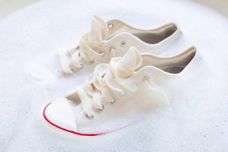Второй простой и безвредный способ — сода. Ее нужно смешать с водой, чтобы получилась кашица. Наноси получившуюся смесь на кроссовки, оставь на 15 минут, а затем смой остатки проточной водой.