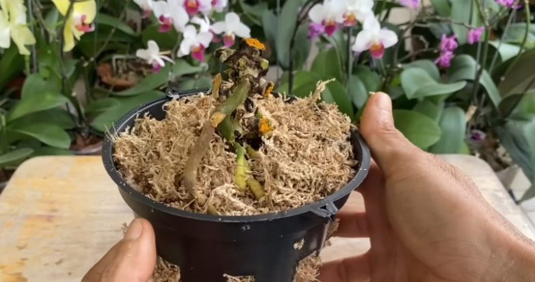 Даже если кажется, что орхидея погибла, у нее загнили корни, а листья пожелтели и отпали, не спешите выкидывать цветок.