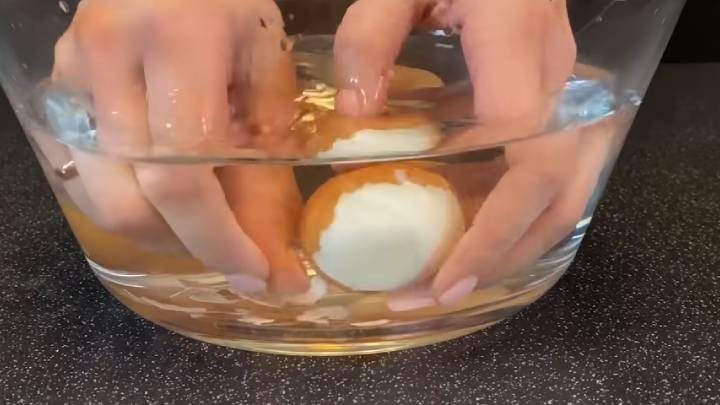 Чтобы аккуратно почистить яйца, не захватывая белок, для этого просто разбейте их под водой и почистите также в воде — не вынимая.