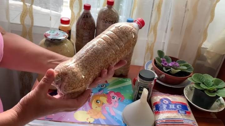 Досыпьте до верха, закройте бутылку. Переверните на бок, прокатайте пару раз. Этот трюк поможет утрамбовать крупу плотно, и вы увидите, что до верха ещё можно засыпать дополнительно. Сделайте так несколько раз, пока крупа максимально не утрамбуется, и места уже не будет.