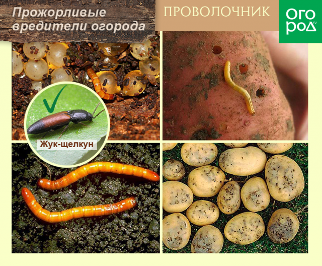 Невинная с виду личинка жука-щелкуна на самом деле – гроза корнеплодов. Особенно страдают от нее картофель и морковь. Проволочник обожает влажную почву. А если в междурядьях растет пырей ползучий – для жука и личинок это просто рай! Обнаружить вредителя можно по такому признаку: поврежденные растения начинают увядать.